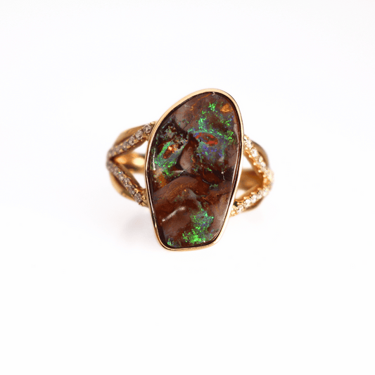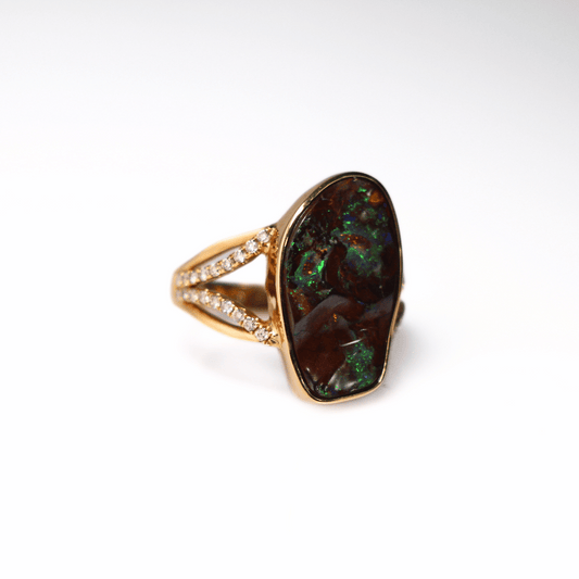 18K Yellow Gold Boulder Opal Diamond Ring