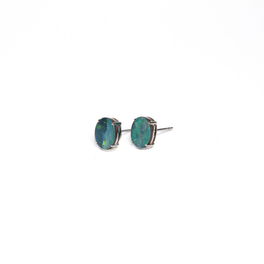 18K White Gold Doublet Opal Earring