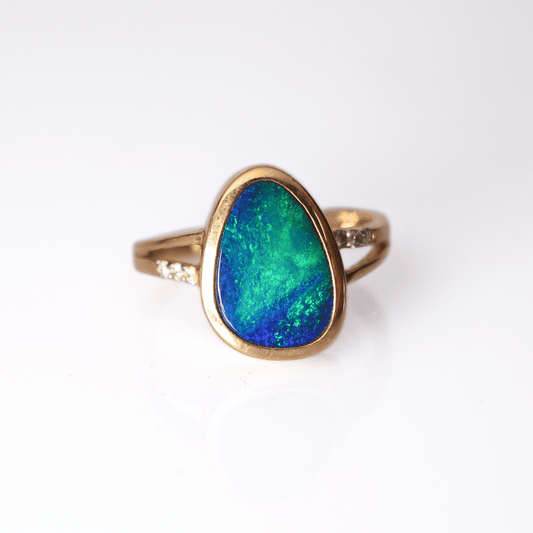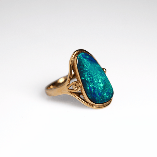 18K Yellow Gold Doublet Opal Ring