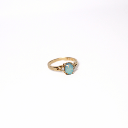 14K Yellow Gold Doublet Opal and Diamond Ring 3.16CT