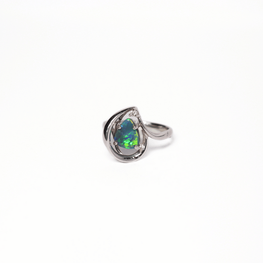 18K White Gold Black Opal with Diamond Ring 1.29CT