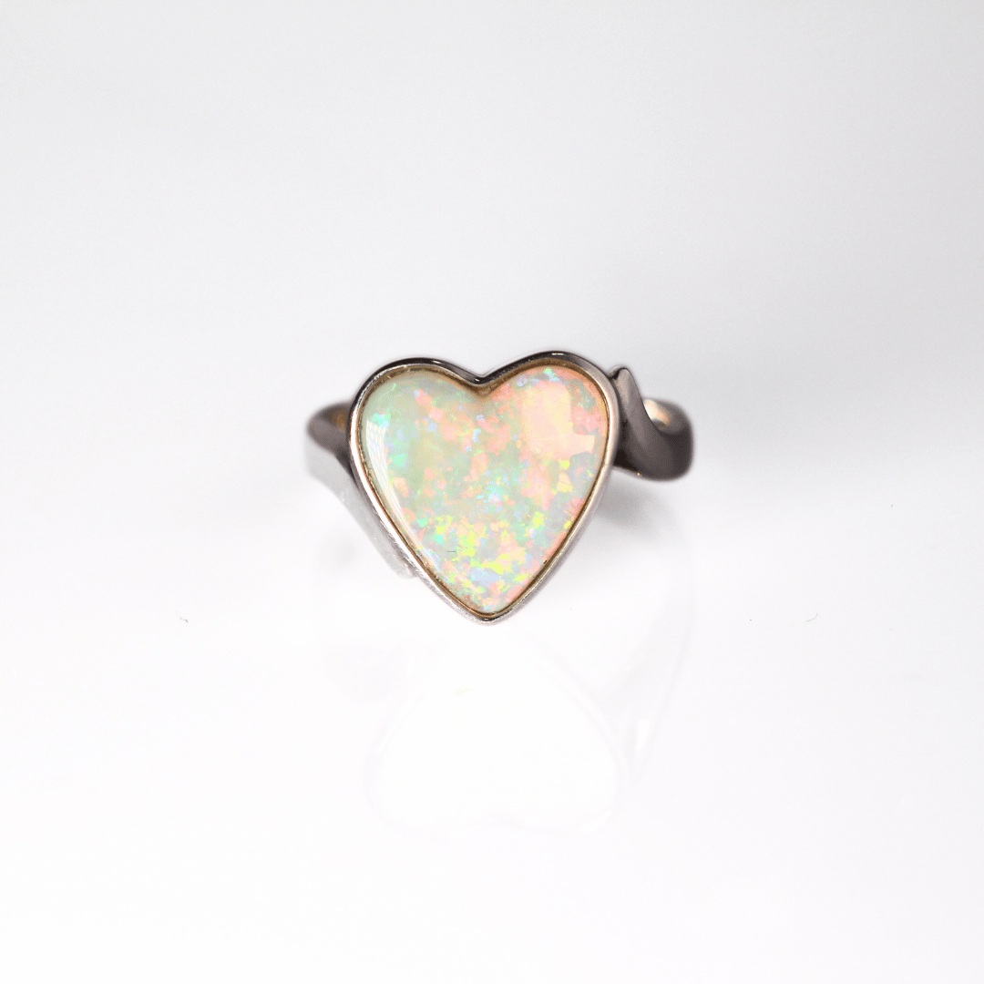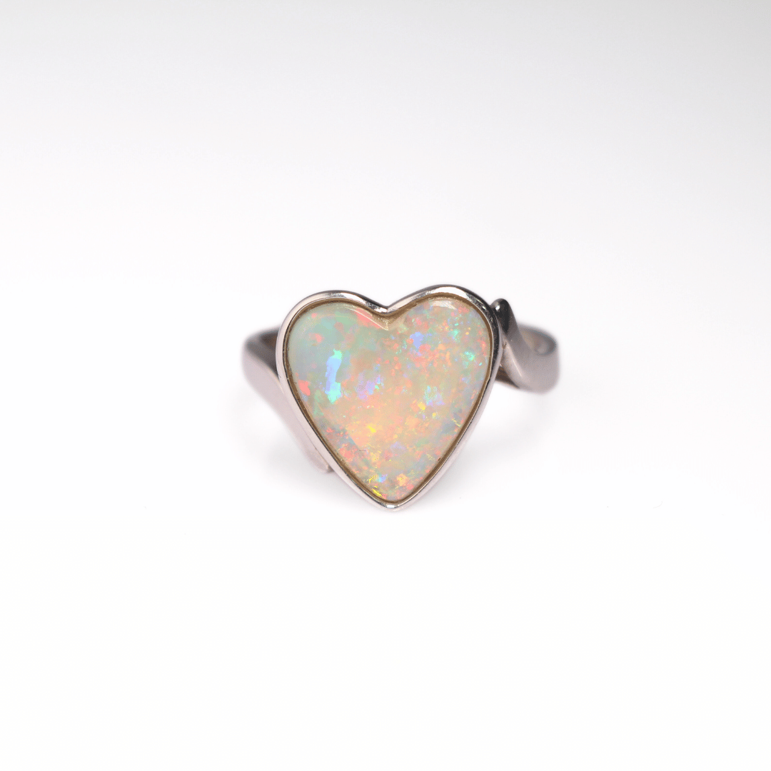 ハート型ソリッドクリスタルオパールリング 14カラットホワイトゴールド